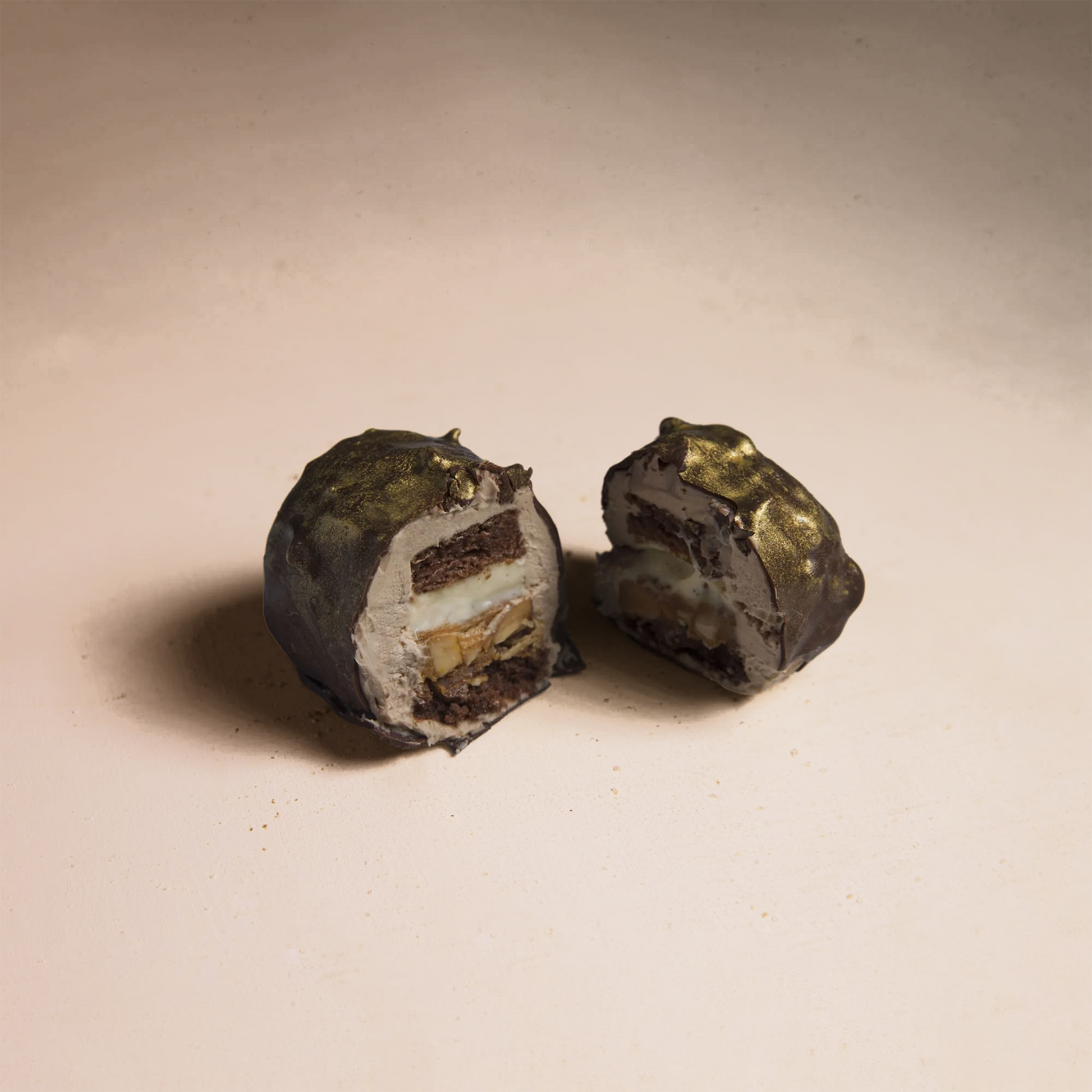 Ingredients: Caramelia 36% Whipped Ganache, Tongan Vanilla Cremeux, Toffee Macadamia, GF Chocolate Crumble, GF Chocolate Cake.